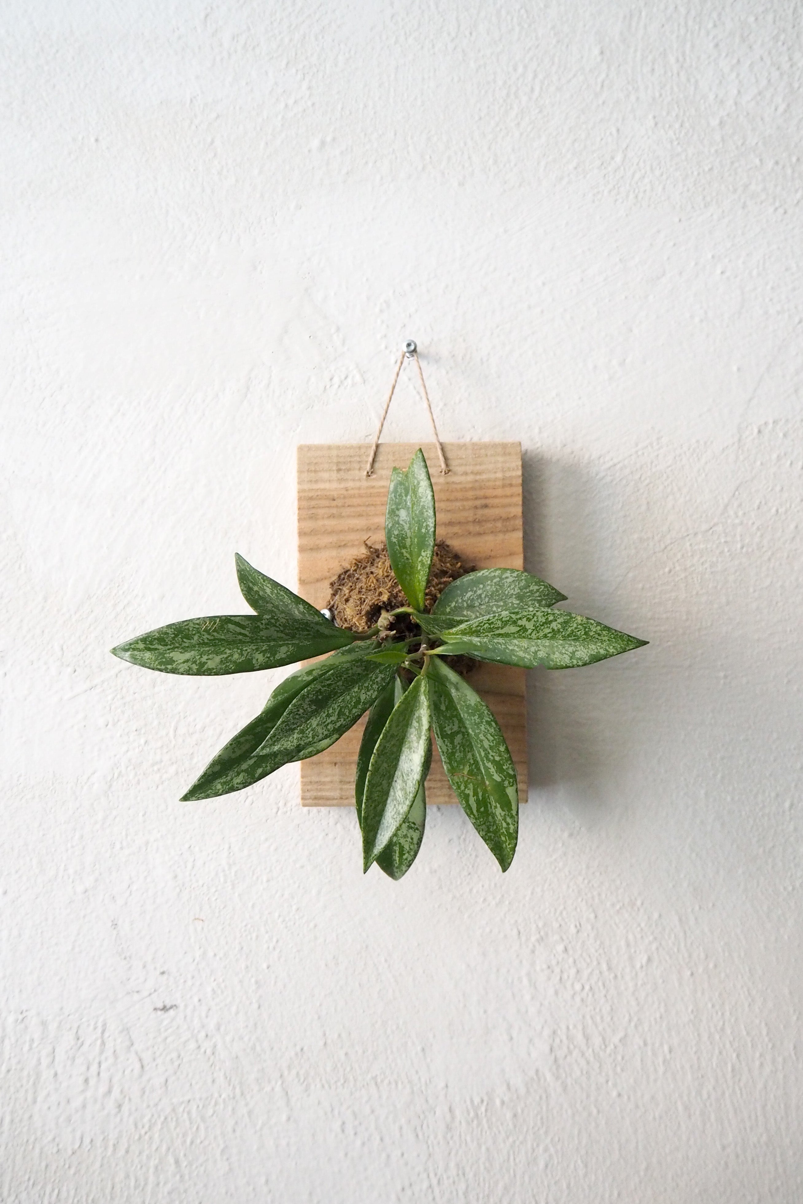 Et plantetrofæ med Hoya Silver spot – en elegant og levende vægdekoration, hvor den smukke, slyngende plante er monteret på en dekorativ plade.